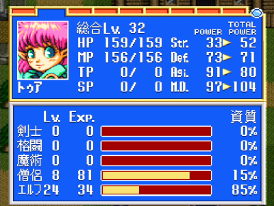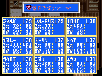 ・AGI:装備バグのため事実上ペナルティなし (※PCE版では-14ほど引かれてます)