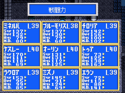 全メンバーのステータスはこんな感じです。(AGIは反映されない装備の値コミなので参考程度に)